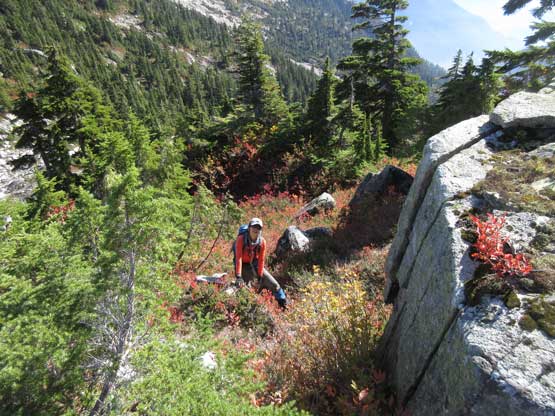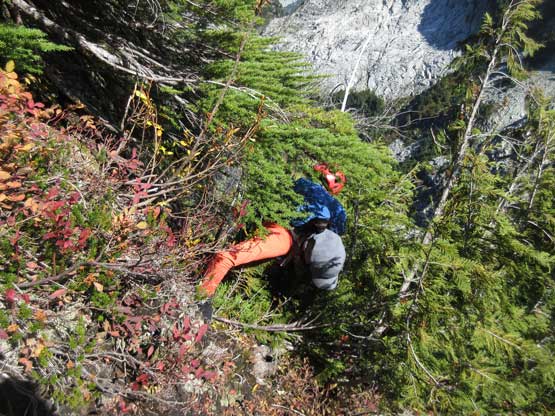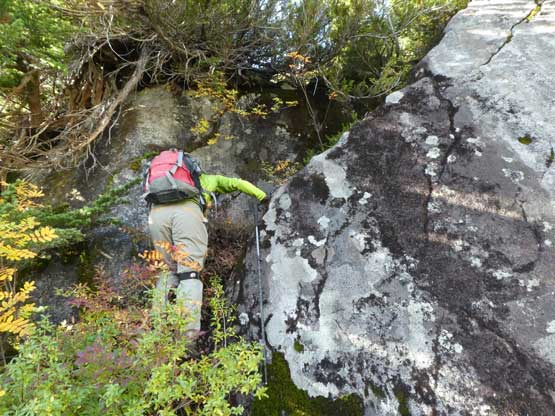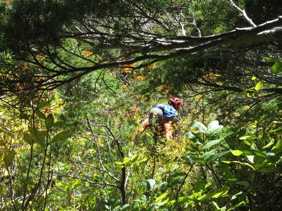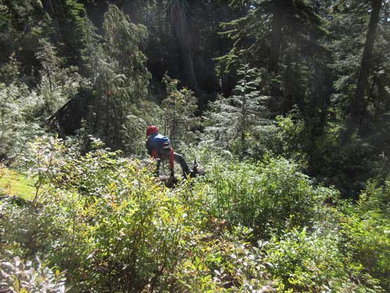 Me bashing up the next uber bushy step. Photo by Lily Q.