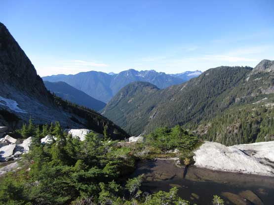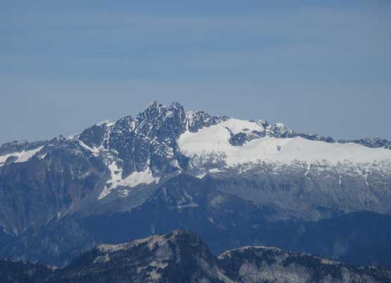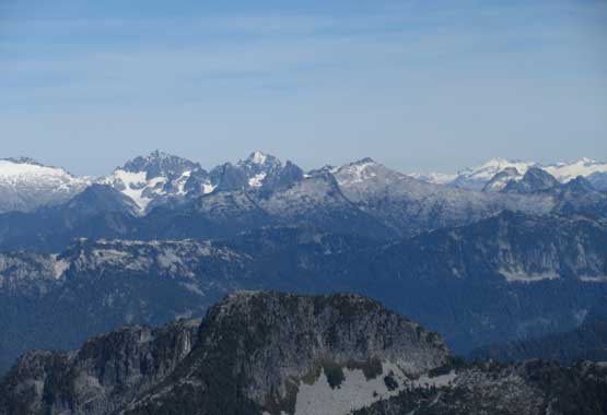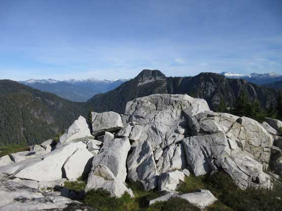Looking over one of Tzoonie’s sub-summits towards Ashlu Mountain