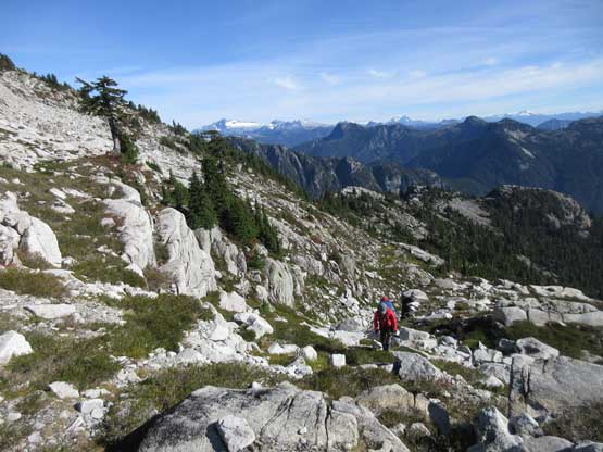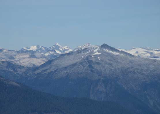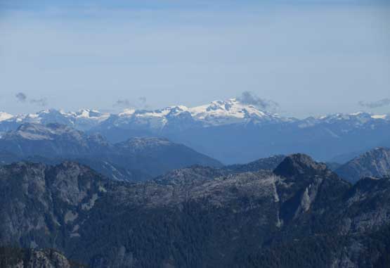 Looking over one of Tzoonie’s sub-summits towards Ashlu Mountain