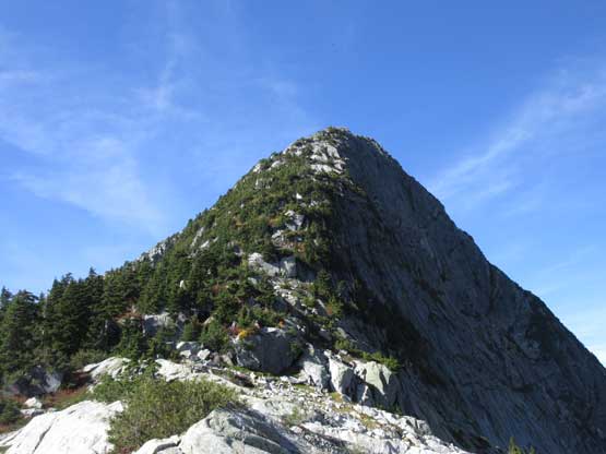 Our first sight of Tetrahedron Peak. The E. Ridge is straight ahead
