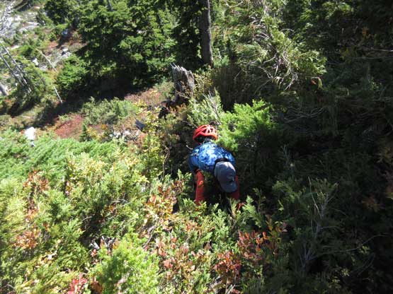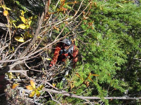 Me bashing up the next uber bushy step. Photo by Lily Q.