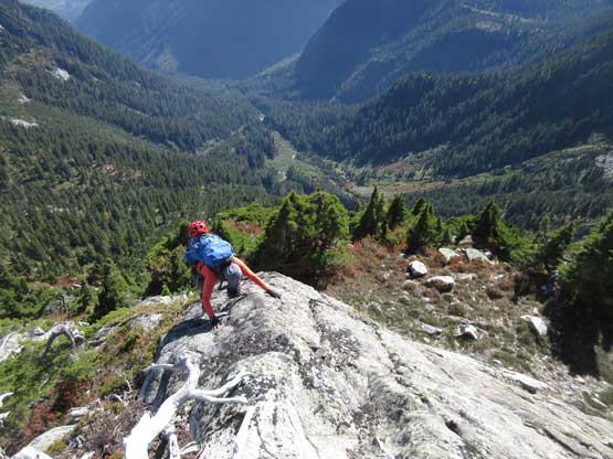 Me scrambling up a fun pitch of 3rd class. Photo by Lily Q.
