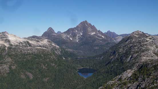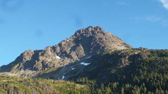 Just when I thought the constant up-and-downs were (briefly) over we made the decision to ascend both highpoints of Phillips Ridge just to be sure we actually made its summit. The first summit was just a short detour from the trail so not a huge deal, but the second summit required an extra 100+ meters of elevation gain to reach. The view from the second summit was good so I’m happy about this decision overall. Now what?! In the height of afternoon heat with temperature probably exceeding 30 degrees Celsius we had to resume the death march. The lower reach of Phillips Ridge traverse involved more up-and-downs with “downs” more than “ups” of course. The combined physical challenges of this trip had finally taken its toll on me. By rough estimate we had gained more than 6000 vertical meters of elevation in the last three days and now we still had to face another 1000+ meters of descent to the parking lot. Needless to say, the last few hours of descent to, and then from Arnica Lake was the most miserable slog ever.