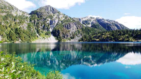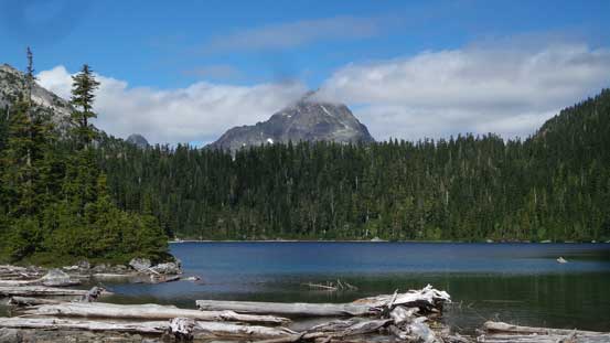 The next stage was traversing the west shoreline of Carter Lake and believe or not, this section was also easier than expected due to the lack of bushwhacking. There’s a good trail for most of the way but we lost it towards the end. The punishment was some unpleasant side-hilling but nothing’s terrible and we soon rejoined the trail at the rear end of this lake. The trail then led us ascending the gentle grassy slopes due NW to a small, unnamed lake below the impressive east face of Mt. Burman. We did no lingering but immediately carried on, crossing over a divide and then we saw the larger, but prettier Schjelderup Lake. Descending and then traversing the west shore of Schjelderup Lake was more difficult than Carter Lake but again, the lack of bushwhacking made it a fairly tame undertake. The only downside was now we had to deal with a fair amount of tedious boulder hoping along with at least two major up-and-downs.