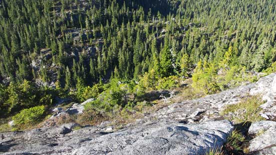 On the morning of Day 3 Adam and I woke up around sunrise. The sky was perfectly clear so this was THE DAY.. The other group had planned to start an hour later and our strategy was to minimize the time spent in that loose SE couloir together as a group-of-six would be too much for rockfall hazard. The day started by a very frustrating 400-meter elevation loss down to the outflow of Burman Lake aka. the “Burman Chasm”. Ironically this would put us at the lowest point of the whole approach since climbing onto the Phillips Ridge from Arnica Lake. For all of the up-and-downs we had gained literally nothing and tell me how frustrating that was.. But let’s face it. The descent into Burman Chasm was done in a couple stages but with each section being a little bit steeper than the previous one. The last part was a near-vertical forested plunge down on mostly tree root ladders and we sure had lots of “fun”. I even turned my face inwards just to make the photos sexier… Then up the opposite side we had a equally steep climb out of the chasm.