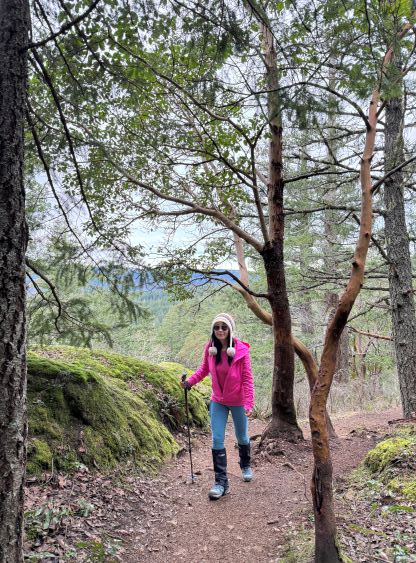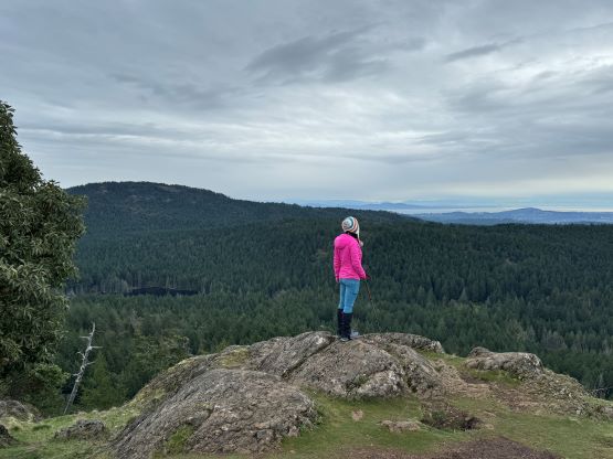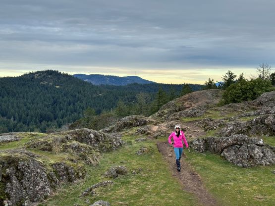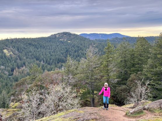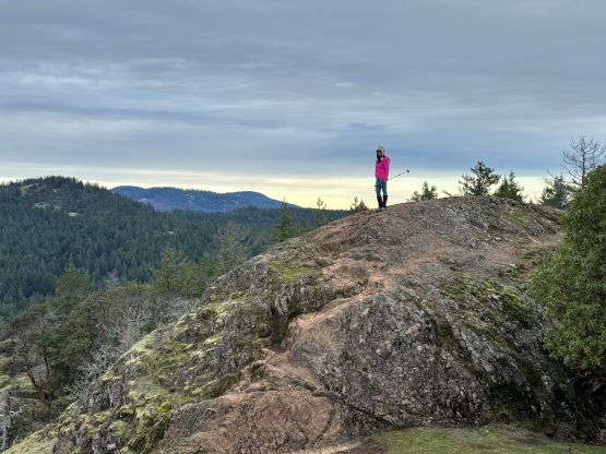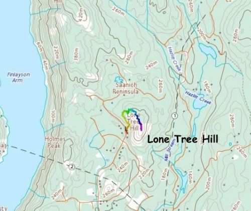 Lone Tree Hill is one of the many officially-named pimples in the vicinity of the Greater Victoria that also boast over 100 m prominence. The hike is rather lame. Kate and I had had about 1 hour to do anything after finishing Mt. Finlayson. We had to show up at the ferry terminal no later than 10:30 am in order to secure our reserved spot, and the drive from Mt. Finlayson’s trail-head to the ferry would take roughly 40 minutes by any route. I was hoping for Mt. Work but it wasn’t realistic, so I made the final decision to tag Lone Tree Hill. The trail to the summit is well marked on my Gaia map so all we needed was to let Google Map direct us to the trail-head. The drive was through some local zones.