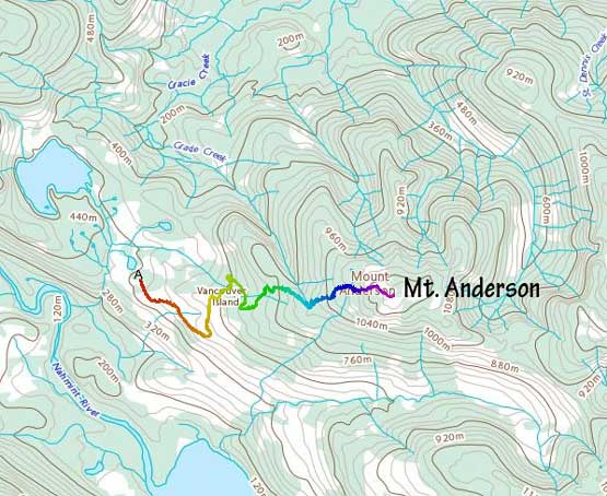 “Anderson” is a very common name in English-speaking countries. This is already my 3rd “Anderson” bagged. The first one was in Waterton Lakes of Alberta and the second one was near Bellingham in Washington. This one locates not far from Port Alberni on Vancouver Island. By coincidence all three Andersons that I have bagged boast over 600 m prominence. I noticed this peak simply by mapsturbating over the years and I noted this as a straightforward snowshoe ascent. There wasn’t any winter “beta” on the internet but the route is obvious for those who are capable reading the maps. The same route I planned actually has a flagged trail that we learnt later.