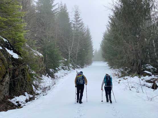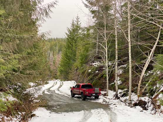 The plan for this Sunday changed a few times due to the questionable weather forecast. Getting some views would be difficult, if not impossible in any area with 4-5 hours of driving but Vancouver Island was the place with the least amount of precipitation. My trusty Meteoblue forecasts predicted 100% clouds but less than 20% chance of precipitation and to me that was good enough. Raphael agreed to pay a visit to the island and I suggested Mt. Anderson as I wanted a no-brainer kind of objective to grant our chance of success. Raphael and I made the decision on Saturday afternoon and spontaneously booked the outbound ferry. Samir and Mackenzie joined at the last minute and the plan was to pick up all three of them from North Vancouver at 5:15 am in my truck. The drive would involve some logging roads to 400 m elevation, possibly with some snow and we wanted my Tacoma to be absolutely certain.