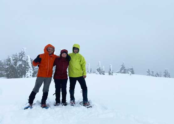 All we did on the summit was to eat some snacks and take an obligatory victory shot. I thought about to find an easier route down the crux but decided to just embrace the down-climb. I assured them that the down-climb should always be simpler than on the way up on non-technical terrain and it sure turned out to be easier. Raphael even went for a short glissade and down-climbed the entire pitch facing outwards. Mackenzie and I opted for the slower but more sure way of down-climbing, facing into the slope. We then followed our own snowshoe tracks out and leisurely descended the boring FSR. Samir had been doing laps near the truck to kill time and our round trip time was 5 hours.