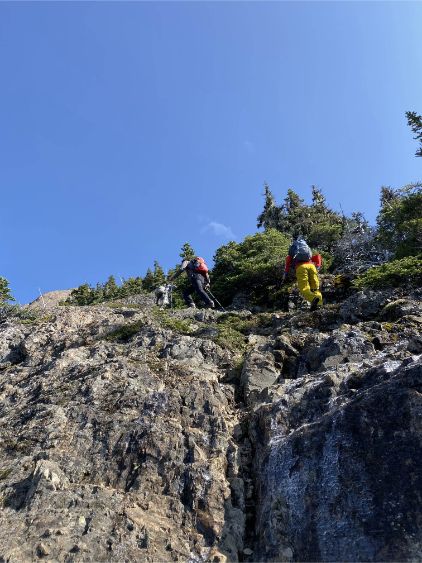 About a year ago Vlad, Mel, Al and I had paid the ferry rides in hoping to day-trip Mt. Arrowsmith from Vancouver in early December, but we were shut down by unexpected logging activities on a Sunday, with zero notice on Island Timberline’s website. We then drove all the way to Klista Mtn. only to get shut down again due to heli logging, that we had to eventually settle on Mt. Wesley and Mt. Horne as consolation prizes. This year Vlad, Mel and I were back, with Adam and Connor coming from Washington state to join the team. Instead of doing it as a snow ascent in December we picked the last weekend of September. The weather was forecasted to be stellar but the previous storm had left a dusting of snow on the mountain. The original plan was the “Nose Route” but with the snow and ice we settled on just the standard route. We also wanted to do Mt. Benson in the afternoon because the standard route of Mt. Arrowsmith wouldn’t be a full day. It’s not a cheap trip to hop onto Vancouver Island, so we had to make the most use of the spent.