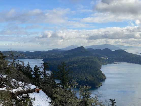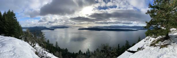 A short weather window formed at the start of this year’s winter break but a low-elevation snowfall event leading to this stretch of good weather shut down a lot of objectives. The decision to check out Galiano Island with Angela was a very spontaneous and last-minute one. Once the decision was made we managed to reserve the round trip ferry tickets to secure our vehicle’s spots on the ride. In the morning we drove to Tsawwassen at 9 am in some thick fog. The fog lifted once we got onto the ferry so we walked to the sun deck to get some views. The drive from Sturdies Bay to the trail-head was about 10 minutes on paved roads.
