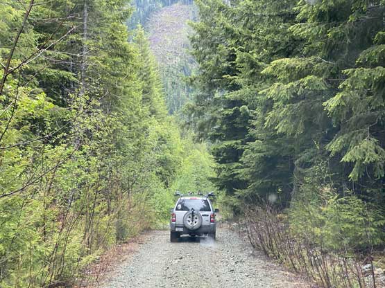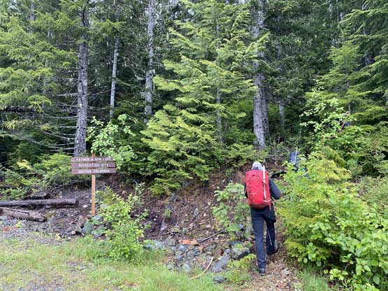 I had been talking to Phil Jackson for a while on Instagram (@islandalpinequest) and I had also read a lot of trip reports written by Matthew Lettington as his beta is pretty much my go-to for the island trips, particularly Golden Hinde a few years ago. The weather forecast was questionable but the weather on the mainland was even worse. I was pretty excited to meet these guys and I seriously needed more friends and partners who are based on the island, as convincing my mainland partners to take the ferry had been a very difficult and sometimes, frustrating task in the past few years. I ended up only making to the island 4 times, with all but Golden Hinde being exhausting day-trips from the mainland (not even with car camping)… I was informed to meet them at 7 am at the start of Museum Mainline so I drove there straight from the ferry terminal. I made there at almost 3 pm and tried to sleep a bit while wrapping myself up with all clothing I brought. It wasn’t cold but sleeping without a sleeping bag was a difficult task. At 7 am Phil and Matt showed up along with a third friend, Dustin and I followed them up a series of logging roads to the trail-head of Father and Son Lake. The last switchback required 4×4 and high clearance but otherwise the road was in a surprisingly good shape, especially considering the worrisome gate at the bottom. The gate had some clear languages of “private property” and “needing permission” but the others assured that they had never seen it being locked.