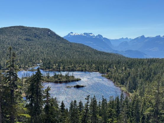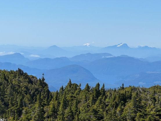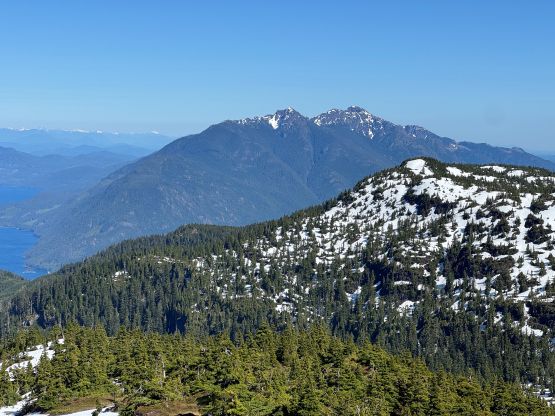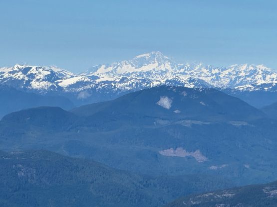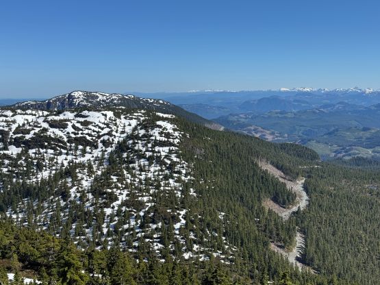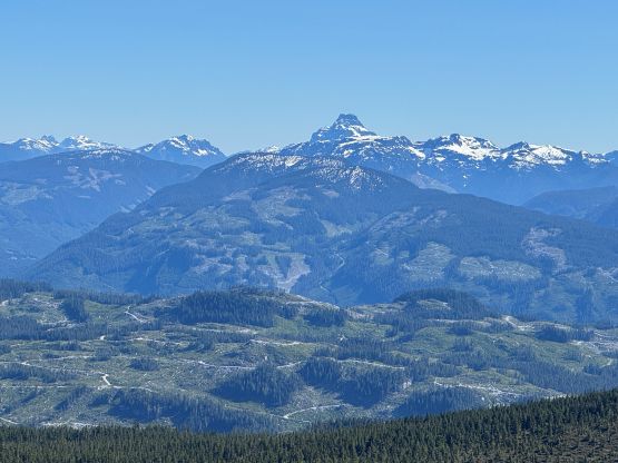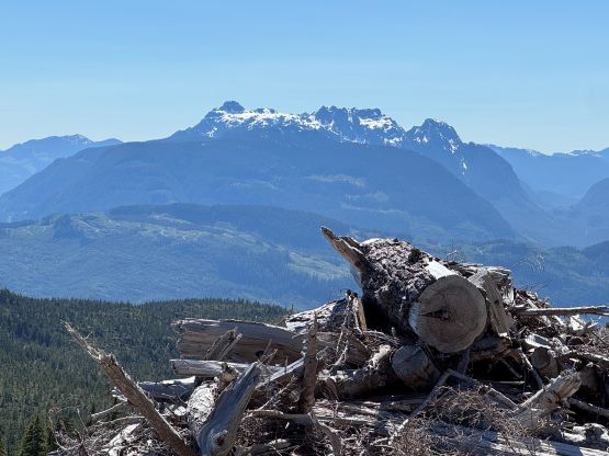 Tsitika Peak and Tlatlos Peak behind some logging slash
