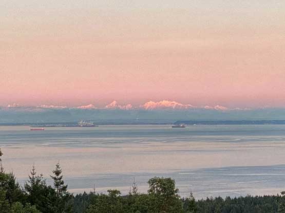 We got down just before it’s too dark to see without head-lamps and despite all the dumpster-diving elements I actually enjoyed this sunset hike. We then drove to the ferry terminal with an hour’s spare to rest. The ferry ride back to Tsawwassen also took an hour. Angela found a nice Italian restaurant in Tsawwassen so we had a late but somewhat luxurious dinner once back onto the mainland.