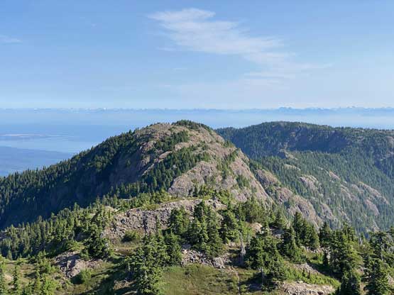 Earlier in this trip we had somehow booked a ferry ticket for the 6:15 pm ride and we estimated to have about 3 extras to kill. While driving back towards Nanaimo we spontaneously decided to dumpster-dive. The first target was Little Mountain near Parksville and that’s entirely a drive-up, so why not. The second objective was Cottle Hill in the vicinity of Nanaimo. I called that one as I saw a road to the top but the road was gated (not to our surprise), so we just walked to the top despite the massive blisters on my feet.