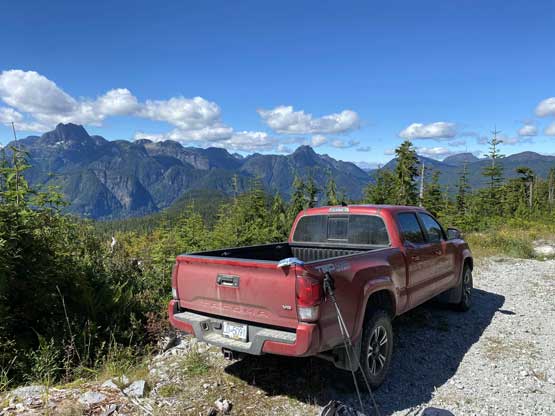 We again, took our time at the truck eating some luxurious snacks including fruit cups. The few wooden planks still felt sketchy on the descent but the rest of the drive down to the main road was uneventful. We opted to drive northwards to White River Main and out towards Sayward. I was hoping for the cell phone services on the island highway but too bad, there was no service whatsoever near Sayward. That’s not good as we needed to check weather forecast to make plans. We ended up driving 60 km south all the way to Campbell River to finally catch some signals. We opted to just drive to a McDonald for both free wifi and food. The next objective would be Rugged Mountain.