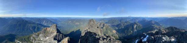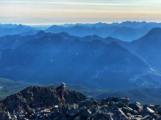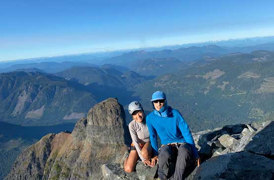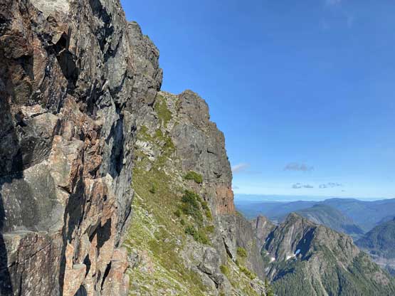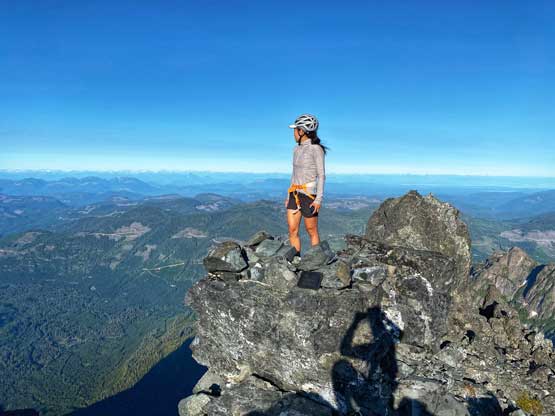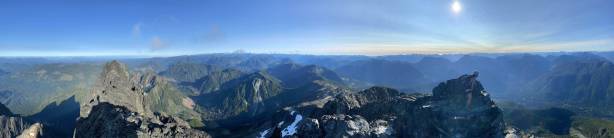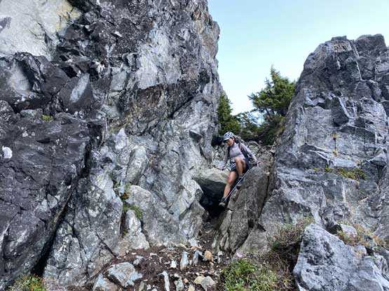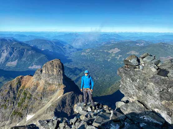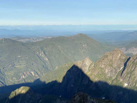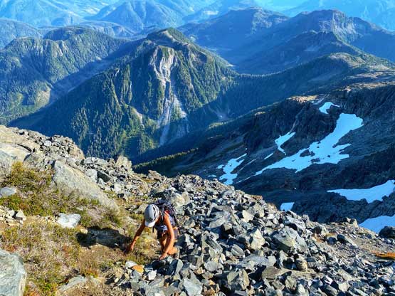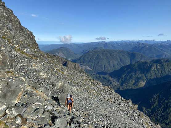 Victoria Peak is the 3rd highest and the 2nd most prominent on Vancouver Island, separated from the higher Strathcona giants (Golden Hinde and Elkhorn Mountain) by Elk and Gold Rivers. The stats suggests that Victoria Peak is one of the most important summits on the island from any perspective and it sure is. It’s an “ultra prominent peak” that attracts international peak-baggers and also on the locally fabled “Island Qualifiers” list. The standard route is however, a fairly straightforward one from mountaineering perspective. The south face is a little bit more than “just a scramble” with a single short pitch of 4th class aided by some fixed slings. Most parties would need one rappel to get off that step. The driving direction is a little confusing and complicated but with the nowadays GPS technology it’s not a problem at all. The last 1-2 km requires a high clearance 4×4 vehicle.