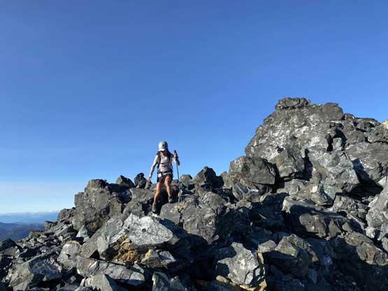 The upper south face consisted of some sustained 3rd class terrain with lots of route-finding and loose rocks. None of us did much research about this stretch but we did come here with two separate sets of GPS tracks. I did not end up needing the GPS tracks and my route-finding on this type of terrain is pretty decent. We kept a general leftwards bearing and managed to keep the scrambling well within the grade of “class 3” all the way to the summit.