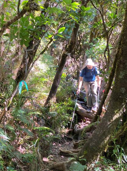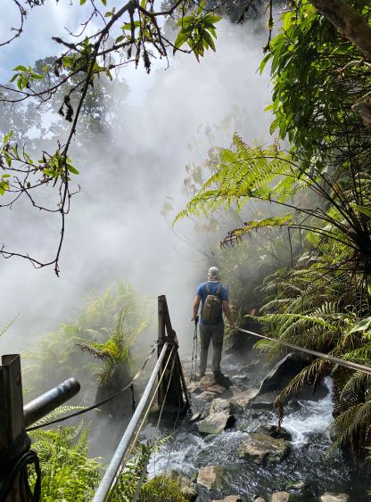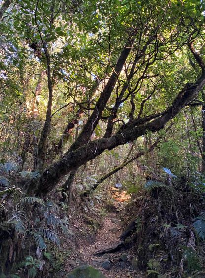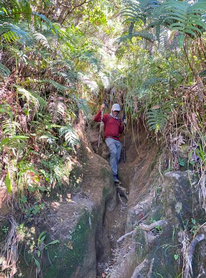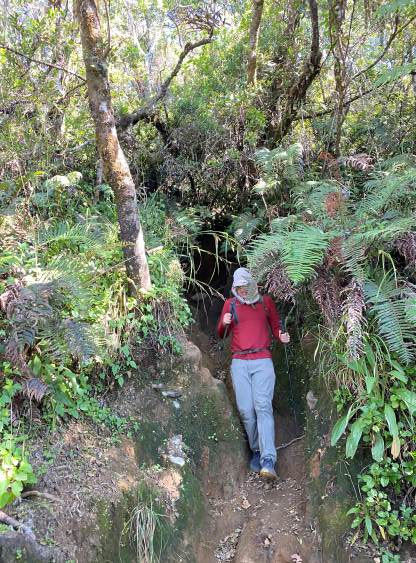 While waiting for Adam I contemplated about descending Petter/Rob’s way to make a loop mostly to avoid the potential bureaucracy issues at the gates, but we had to have a discussion about that. This would be a massive gamble but I did not think the downhill thrashing can be unbearable even at the worst possible conditions. However, after 30 minutes Adam still didn’t show up. This was very unusual so I decided to make my way down. This meant we must descend the same way we came up from, and we would deal with whatever issues at the bottom. I eventually crossed path with Adam at around 2900 m elevation and it turned out that he was struggling with energy, likely due to not eating a proper breakfast. Instead of making my own way down I opted to wait at that spot, and we made the rest of the descent together. We did not see any other human being until that creek crossing, which made sense as the mountain was closed in the previous day. An averaged Indonesian hiker would take several hours to reach that spot and the gate was not supposed to open until 6 am. It was about 10 am and it seemed correct. After passing that Cibeureum waterfalls junction we met hordes and hordes coming up. Not far from the end of the trail Adam spontaneously spotted a side trail diverging to the left, and after quickly checking the maps we decided to take a gamble. This trail was extremely steep and slippery and quite undefined at places, but brought us down to the road and bypassed all of the potential bureaucracy problems. Our round trip time was 8 hours, a bit longer than expected but our driver was still patiently waiting.