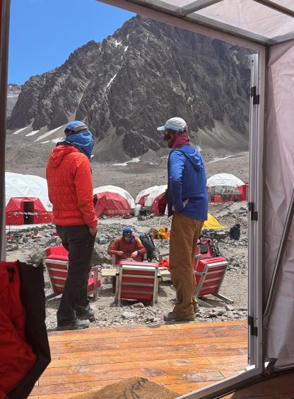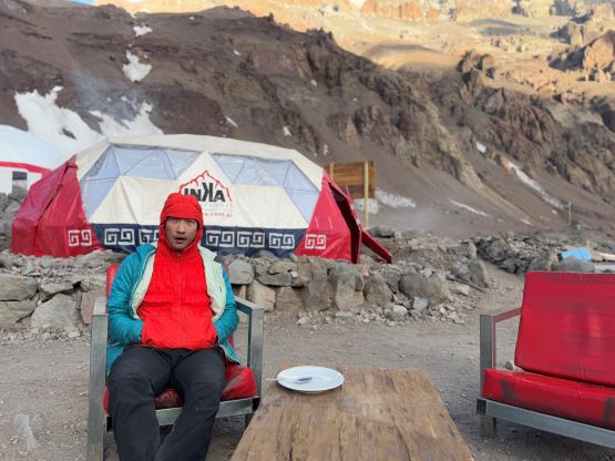 The next morning we went to the dining tent and the breakfast was eventually served about half an hour late, but that’s okay as the quality of the meal was acceptable. By this point we had been mostly taking to a Balgarian guy named Nikolai, who’s also known as “Kevin” by the company for reasons that I’m not going to share. This was Nikolai’s 4th day of the trip and his appetite wasn’t doing great. We had no issue with that, but a few hours later Erica started to feel sick, unsure if it’s the food or the altitude. I told Erica that whether we were able to start as planned depended also on our bags. The manager at Los Puquios promised us that the mules would come at “noon” but we were not permitted to get our bags until after 2 pm. These extra 2 hours made us very hungry but I resisted the temptation to make further complaints. Raphael also permitted us to stay another night in INKA’s dome tent for free, which I thought was very nice. Throughout the day Erica was not feeling any better and she had partially lost her appetite. The plan was to move to C1 (Camp Canada) on the following day but we would have to reassess in the morning. Regardless our itinerary we made an appointment to do the mandatory medical check at 5:30 pm, and of course it was not on schedule. We had to wait for half an hour outside the medication tent in the flurries for our turn. I was surprised that Erica had easily passed the test, so it was most likely the food and not the altitude. Talking to some Taiwanese climbers I learnt that food poisoning on Aconcagua was rather common. I’m a weird guy who grew up very dirtily in China so I don’t easily get food poisoned even when my partners were having serious diarrhea eating the exact same food.