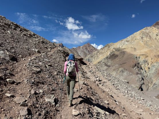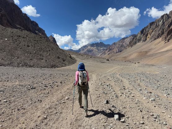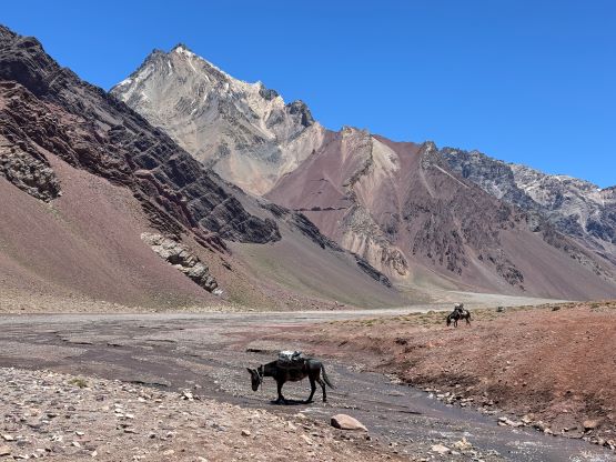 INKA is one of, if not the biggest company out there but their communication was nowhere the greatest. Their replies (via email) were initially clear and quick but had become slow and unsatisfactory after our arrival in Argentina. In any case Erica and I showed up at their office in Mendoza one day earlier than they said (to have more buffer), paid the permits and the remaining balance and learnt that our planned approach would likely not going to work thank to some unforeseen constraints with the mules. We were planning to do the standard approach with one night in Confluencia (the 28th) but to make that happen we had to deliver the 60 kg mule bags one day earlier in the morning (27th) and that had to be done in person in Los Puquios near Penitentes. We could not make that happen, unfortunately. I quickly formulated an alternative solution, that was to make a single push from the trail-head (Horcones) to the base camp (Plaza de Mulas) on the 29th. This was possible only because we were already acclimatized and this allowed us to more or less follow the scheduled itinerary. We could of course start one day later to be still able to spend the night in Confluencia but at this point we were sensing an ideal summit window on Jan. 2nd and starting a day later would not position us well for that. Together with the receptionist we made the decision to be in Los Puquios in the morning of the 29th, deliver the bags and make a single push to the base camp, but there’s more problems coming. We then booked one night in a private room in Altas Cumbres Penitentes, fearing of Covid infection in shared hostel rooms. I pushed hard for INKA’s driver to pick us up from this hostel but to no avail. The receptionist said the earliest possible time would be 9 am and that put us well in the day’s heat. Still, we were fit so I couldn’t care that much.