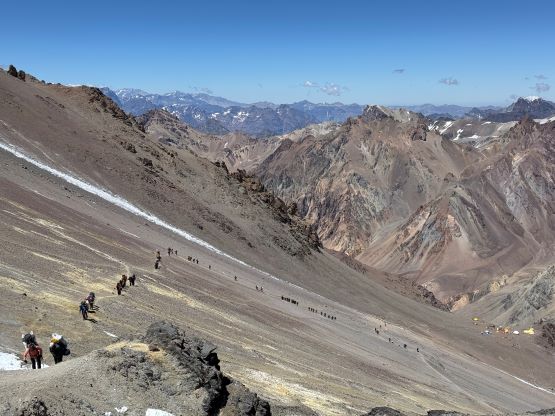 The 7th, and the final day would be spent trekking 25 km back down the Horcones valley route. I was unsure how Erica would do with her black toe nails and massive ass blisters, but again we couldn’t initiate a rescue and there’s no way would we pay 1700 USD for the helicopter ride, so suck it up and be it. There’s more logistics in the morning as Raphael made us to get the mule bags ready by 8:30 am. I didn’t understand the reason but sure, why not embracing the cold for one more time. The packing was downright miserable but the sun eventually came up at 9 am and we could finally warm ourselves up. Raphael promised the mule bags to be down in Los Puquios by 5-6 pm so technically we could have booked the 8 pm bus back to Mendoza, but I didn’t want to put my bid on INKA’s reliability. I was downright correct, as otherwise we would have missed the bus. The bags didn’t arrive until after 9 pm, which was surprisingly not to my surprise. The trekking itself was more enjoyable than on the way in, and I made Erica to lead most of the way. Erica stated multiple times that we should plod slowly but her “slow” was still much faster than most people’s pace. We took a shit ton of breaks to dry her feet but our plodding pace was still much faster than most groups’. We eventually got down to Confluencia where Adam and Jacob was also at, and gave the two packs of ramen for INKA to prepare for. They also provided us fruit salads but didn’t charge us any. About an hour and half later we finally got out and did the final 7 km hike back to the trail-head, completing the round trip C2C moving time in under 24 hours. The driver showed up quickly but as mentioned earlier, we spent a few hours waiting for our bags to arrive. Thankfully nobody had committed to that 8 pm bus as otherwise this would lead to another disaster. We booked another night of stay in Altas Cumbres Penitentes and took the 12 pm bus back to Mendoza on the next day.