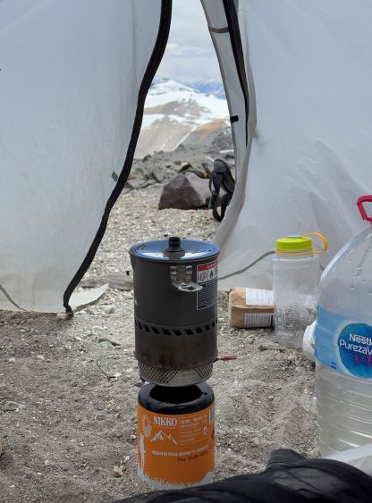 - MSR Reactor stove with fuel bottles bought in Mendoza