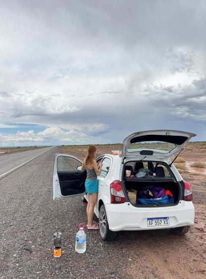 Fearing the dogs could have come after us we went down the exact same route, down-climbing that 3rd class chimney. I liked the orientation of this chimney as it faced the exact opposite direction as those dogs. We then quickly made our way back to the parking lot on the south/false summit and then immediately drove away. We had summitted at 11:30 pm so it was well past midnight now, that I had become very tired. I had learnt from Eric Gilbertson that the best way to stay awake was to roll down the windows, constantly slap my own face and pinch my thighs. In addition to those I also turned on the music volume to as loud as possible. I probably had slapped my face 20 times but did eventually drive us down to the hotel in Villa Yacanto safely. The driving down was quicker and easier but not by a lot. It was easier mostly because I already knew what exactly to expect so I didn’t have the mental pressure to deal with the unknowns. We eventually got back to the hotel at 2 am and I still had to take the mandatory shower before going to bed. The next morning we woke up at 9 am and checked out an hour later. I was secretly hoping for another P600m along the way (Volcán El Morro) but the weather eventually made the decision for us. There was a massive ass thunderstorm overtop the objective, so we gave up on that and drove straight back to Mendoza. In retrospect it was a good decision because otherwise we would have to pull through another all-nighter to get things packed for the air travel. We returned the car at 7:30 pm, took an Uber back to the hotel and still had to go out for dinner and completely repack our luggage (3 pieces of checked bags). This lasted to 1 am and we had to get up at 6 am for the flying to Santiago, Chile.