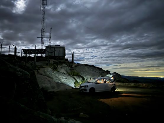Villa Yacanto is a neat village but too bad we didn’t have time to enjoy the stay. The hotel that we checked into was also excellent but we had to immediately leave after getting the key. It was past 8:30 pm when we started the 40 km rough driving up towards the summit. The hotel receptionist confirmed that it had been raining heavily during the day so I wasn’t sure if the driving would be even possible, so part of the reason of rushing was also to scout things out. If there’s indeed a muddy impasse at least we could adjust the plan accordingly. Rob’s group encountered a loose section that necessitated a second attempt by giving some momentum and the road was dry for them, so I honestly only put 60% bid on the chance of success. In about half an hour we had to turn on the high beams and the road had also become rougher. I had consulted with at least 3 different people who drove up this peak in the past several years, and the conclusion was that a 2WD car would be sufficient enough. This was true but only with the assumption that the driver’s experienced and brave. The job was far from sitting there and pressing the gas pedal and honestly without the years of 4×4 experience in the Tacoma I probably would have turned around. Unlike Rob’s group we did not encounter a single crux section but the road’s sustainedly rough for at least 20 km distance, that care must be taken for every single meter forward. It was very mentally taxing especially given that the car had already experienced a flat tire on the mere first day of this trip, on a section of the “highway” that’s much easier than this. Fortunately with perseverance we eventually made it in about 2 hours. There were a few muddy puddles due to the rain but I was also to work things around, and the final stretch of insanely steep cobblestone pavement also did not impose any problem.