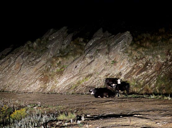 Villa Yacanto is a neat village but too bad we didn’t have time to enjoy the stay. The hotel that we checked into was also excellent but we had to immediately leave after getting the key. It was past 8:30 pm when we started the 40 km rough driving up towards the summit. The hotel receptionist confirmed that it had been raining heavily during the day so I wasn’t sure if the driving would be even possible, so part of the reason of rushing was also to scout things out. If there’s indeed a muddy impasse at least we could adjust the plan accordingly. Rob’s group encountered a loose section that necessitated a second attempt by giving some momentum and the road was dry for them, so I honestly only put 60% bid on the chance of success. In about half an hour we had to turn on the high beams and the road had also become rougher. I had consulted with at least 3 different people who drove up this peak in the past several years, and the conclusion was that a 2WD car would be sufficient enough. This was true but only with the assumption that the driver’s experienced and brave. The job was far from sitting there and pressing the gas pedal and honestly without the years of 4×4 experience in the Tacoma I probably would have turned around. Unlike Rob’s group we did not encounter a single crux section but the road’s sustainedly rough for at least 20 km distance, that care must be taken for every single meter forward. It was very mentally taxing especially given that the car had already experienced a flat tire on the mere first day of this trip, on a section of the “highway” that’s much easier than this. Fortunately with perseverance we eventually made it in about 2 hours. There were a few muddy puddles due to the rain but I was also to work things around, and the final stretch of insanely steep cobblestone pavement also did not impose any problem.