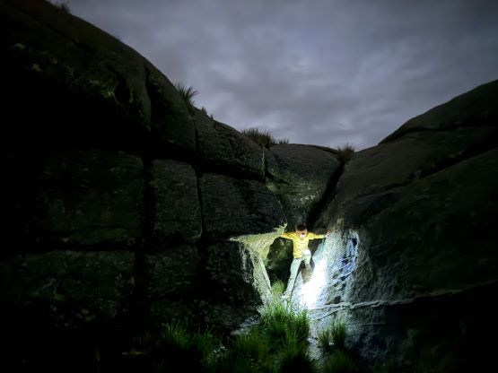 Since we indeed managed to drive to the very top (of the false/south summit) and the weather was mostly clear, there’s no point in rushing. We were both very hungry from the pushing so we spent about 40 minutes cooking the couscous with the Indian curries that we had brought in from Canada. We used up the last two pouches of the curries here. The winds made the cooking difficult so I just simply cooked inside the car. We then started the 1-km walk to the true summit with head-lamps on. The hiking portion of this ascent was more difficult than I thought with some route-finding and scrambling. Right off the bat we did not manage to find the correct way, and faced a few steps of 3rd class down-climbing. We then joined the trail and followed it, with some up-and-downs to the west side of the summit block, which we scrambled up through a 3rd class chimney. I was sure there existed an easier alternative but it was fun to scramble and I was getting impatient in finding the “correct” way. This brought us to the true summit with the statue but we could see at least 1 or 2 contenders further to the north so those must have been checked as well. Later reading Rob’s trip report we realized that the statue was indeed the highest point, but it was always a good practice to be 120% sure. Unfortunately seconds after summitting that northern contender we got barked by a pack of wild dogs which was quite scary. We quickly retreated to the summit with the statue and took a much needed break.