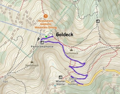 Goldeck is a popular touristy summit but only boasts over 400 m prominence, so this was not on the original itinerary of the trip as the “line” we drew for this European trip was at least 600 m prominence. Adam and I ended up bagging it purely by mistake. The original plan was the P1300m Mirnock after completing Ameringkogel and I let Google Map direct us to the trail-head which is labelled “Wieser Hütte” on the Gaia map. The driving direction and time seemed reasonable so I didn’t make any additional checking, and I was also not driving at the moment. Instead, I was too tired to even stay awake. I woke up at a toll booth and didn’t bother to check anything neither as the road to Mirnock’s trail-head is supposed to be a toll road as well, but we quickly realized the mistake. This is another Wieser Hütte. It’s in the same range as the P1000m Latschur but the location of this hut only makes sense if we were to do Goldeck. This peak still boasts some prominence and we had already paid 15 euros for the toll road, so we had to do it.