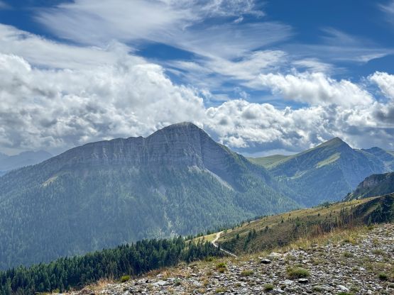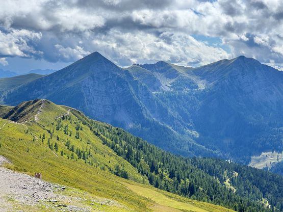 I was glad we ended up being here as the views were better than Mirnock and the ascent was also supposed to be shorter. We only had a bit more than 250 m elevation gain to deal with, but we made the “ascent” even shorter by driving up the private road all the way to Panoramahütte. As we were about to gear up for the hike a shutte van came down revealing the gate was simply “dummy locked”. A few minutes later we decided to open that gate ourselves and slowly drove ourselves up. The road was unpaved but not too bad for the rental 2WD. I thought someone would definitely give us some hard time but nobody seemed to be bothered. There weren’t too many people around anyway. By parking at this uppermost parking lot we only had 20 vertical meters to gain, so didn’t even bother to don hiking cloths. This is a touristy summit so as expected, the views were excellent towards all directions. There were however, too many infrastructures on the upper mountain so the panoramic views were kind of blocked.