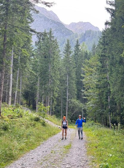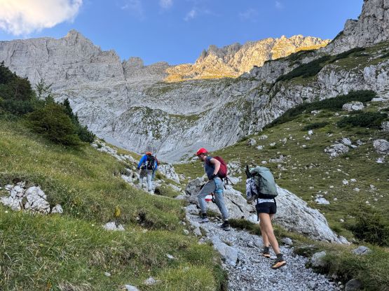 James and Arjan would come down in their own vehicle so we planned to camp separately and meet up in the early morning at 6 am. Random car-camping in Austria is illegal but the law is poorly enforced, such that finding a sneaky spot to pitch the tents had been fairly easy throughout this trip. Adam, Erica and I eventually opted for a dirt road next to some ranchlands, and we got the tents erected at dusk. This spot was only 2 km from the actual trail-head so we had a short drive in the morning. James and Arjan were already there by the time we pulled in.