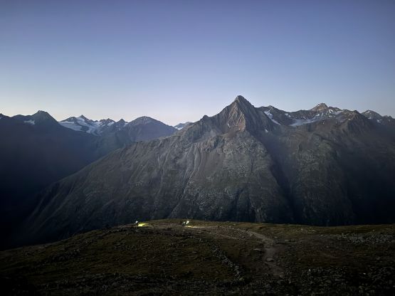 There was a week-long weather window allowing us to choose some of the bigger objectives and the plan was to do Wildspitze the day after Hoher Dachstein. This required more than 6 hours of driving. Google Map directed us through Salzburg and part of the southern Germany before going south towards Innsbruck. The traffic situation wasn’t too bad except for the area around Salzburg, but this detour into Germany did add some time. We eventually turned onto the smaller roads heading towards the village of Vent, and we did find a perfect camping spot on a spur road about 10 minutes from Vent. The next morning we woke up at around 2:30 am as I was concerned about the condition on the glacier due to the heat wave. I also noticed a trail heading up from Rofen a few kilometers farther up the road than Vent, so we drove there to start the day. The parking area was very limited but we did get the vehicle parked, and the trail did appear to be “reasonable”. This way we would shorten the elevation gain by more than 100 m.