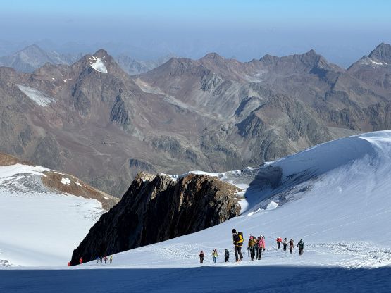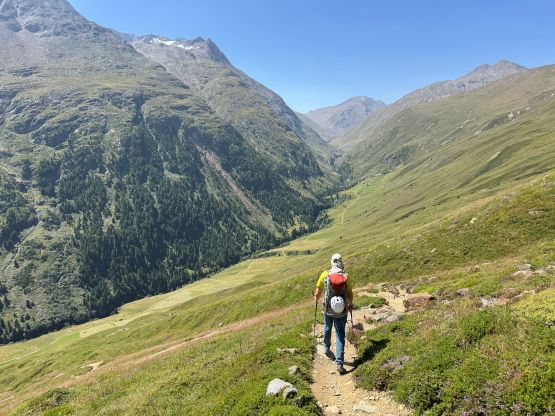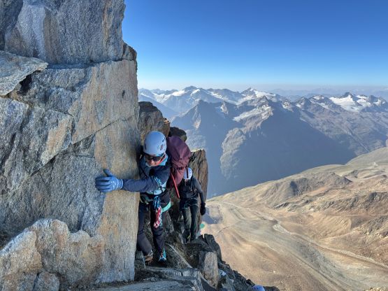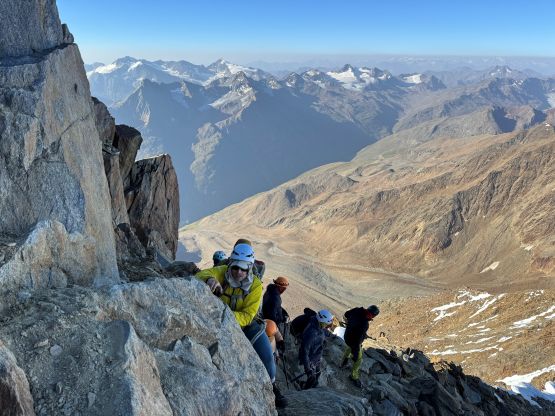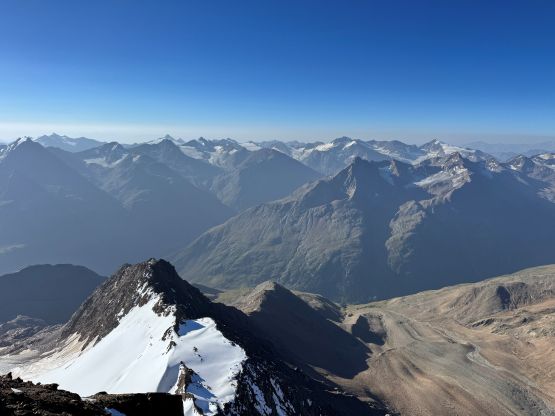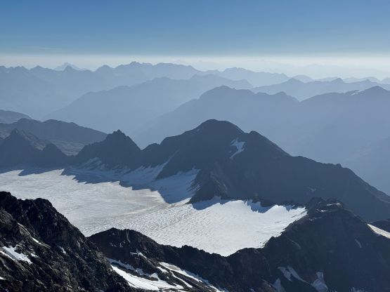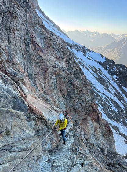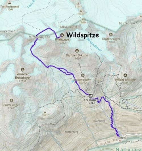 Wildspitze in Tyrol is the 2nd highest peak in Austria as well as the 4th most prominent in the entire Alps, making it one of the more sought after objectives in the region. There are quite a few approaches and all require some degree of glacier travel. The most commonly used approach on peakbagger.com seems to be the southern one from Vent mostly because the glacier crossing is the shortest. This route does add some via ferrata climbing to access the upper glacier, and requires about 1700 m elevation gain. Those who stay in Breslauer Hütte can take the cable lift shaving off half of the elevation gain, but the opening hour of the said lift is too late for day-trippers. Adam and I agreed to do most, if not all of the objectives as single-day pushes so we would have to make the full ascent from the valley bottom.