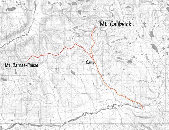 Ascent routes for Mt. Caubvick and Mt. Barnes-Pauze. GPX DL