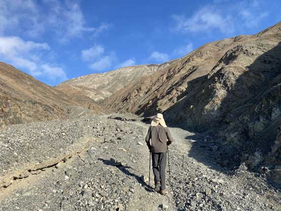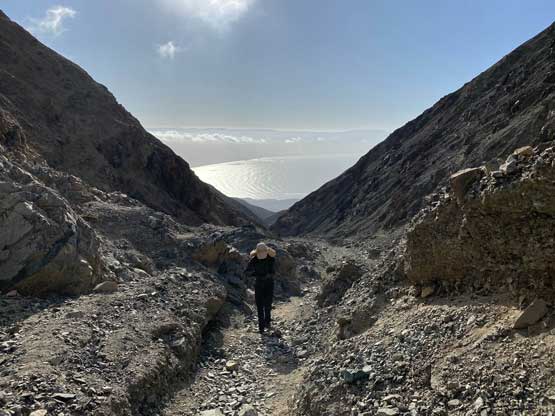 Connor did some research in the evening and found multiple sets of GPS tracks. The route was not shown on my Gaia map so we needed more information. In the morning we had a luxurious breakfast in the hotel and then drove to the start of trail using Google Map app. The drive to the trail-head was scenic in its own. The last couple kilometers on the dirt road were technically inside the national park and were gated for motorized access. We however, simply followed a set of tire tracks and drove around the gate. We parked before entering the main canyon system but on hindsight we should have kept driving, as the road actually continued into the canyon for a long stretch before deteriorating into a “trail”. The elevation at the “trail-head” was around 300 m.