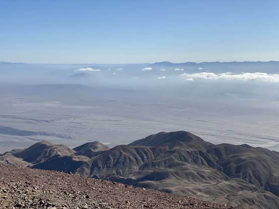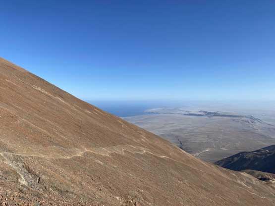 We lingered on the summit for almost an hour as there’s no point to rush, but eventually it’s time to get down. It turned out that we got down in one single push. The ground was loose and soft for the most parts and we jogged for at least half of the route. I briefly thought about bagging more peaks but nothing seemed “worthwhile” so we decided to drive back into the city of Antofagasta to catch up with work and stuffs.