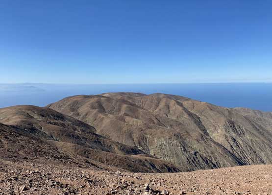 What appeared to be a half-an-hour stroll turned out to be longer than expected. I couldn’t keep up with Connor’s pace anymore so just went at my own pace (still faster than my normal hiking pace at sea level), breathing as hard as I could. Eventually after a few long switchbacks I reached the summit where some facility towers were located. I went down the other side for a short distance for unobstructed views of the Pacific Ocean.