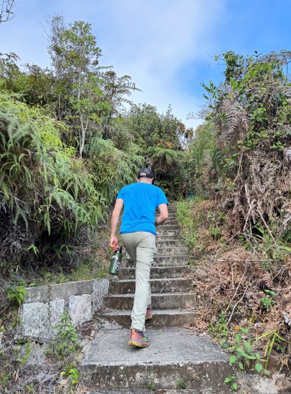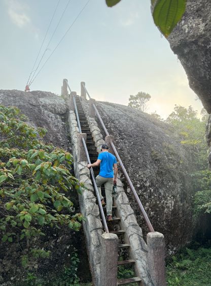La Gran Piedra is a popular tourism destination about an hour of driving away from Santiago de Cuba. A paved but windy road goes almost to the top and there’s at least one hotel and one restaurant at the parking lot. The area is not in a national park, so hiring a guide is only “recommended” but not “required”, and the hike to the summit would only involve 100 m elevation gain. The high point is a massive boulder and some ladders and staircases had been carved onto the boulder as otherwise this would be a technical climb. The peak boasts over 900 m prominence and that’s how Raphael and I noticed it. Our primary objective in Cuba was Pico Turquino but we had a few extra (buffer) days due to the limited available flights, so we would also hike Gran Piedra as well as La Mensura if we could sort out the logistics in situ. The company that offered us Pico Turquino trek also gave us a quote for this bonus objective (180 GBP) but we refused the offer. Instead, our lead guide Damian managed to connect us to a local taxi driver and we were able to bargain the price down to 60 USD for the round trip transportation, including the waiting on the summit.