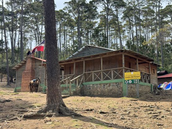 We then dashed back down to the trail junction and joined the rest of the team that wanted to also hike Loma La Pelona. Our guide for this secondary objective would be a kid on his horseback but I took off ahead as usual and summitted on my own pace. The final push to the true summit was off trail and reminded me a little bit of the high grass on Pico del Yaque in the previous day, but not nearly as bad. The true summit was unfortunately forested without any view, but there’s an old and broken fire tower. I went up and down and got some nice photos but the last few meters were sketchy. Craig B. showed up minutes later and did the same, but the rest of the group that arrived with the kid guide got denied, as the tower was apparently “illegal” to climb. But then that kid got off his horseback and climbed it himself and did not give a fuck about that, and that really pissed several of us off. I was not about to make an argument because I’d already got what I wanted, but I would 100% give him a hard time if I spoke fluent Spanish but hadn’t climbed that tower myself. In any case I dashed/jogged down together with Daryn and I had to work quite hard to keep up with the pace. After catching up to Kathy I went ahead and joined the rest of the team that did not go for that secondary objective at the campsite. The breakfast was served in a few minutes. The plan was made to leave at 10 am so I went back to the dorm to take a nap after having the late breakfast.