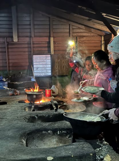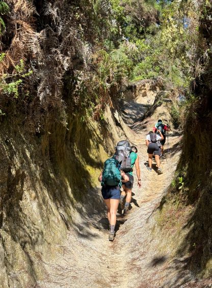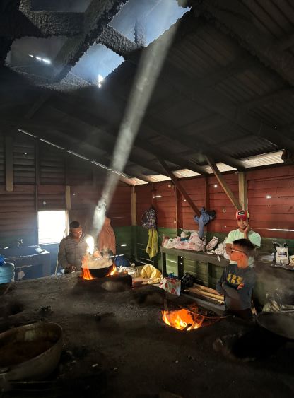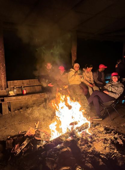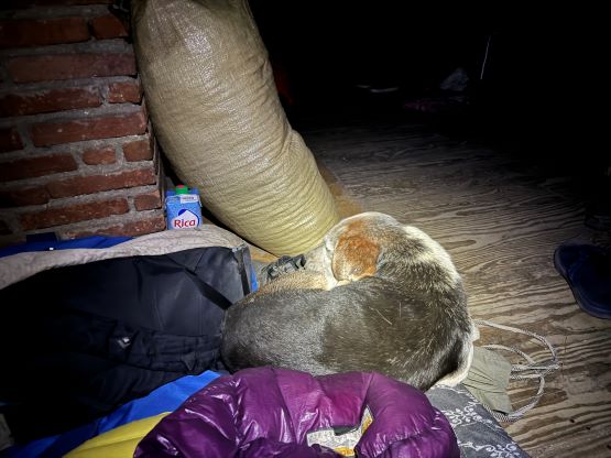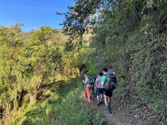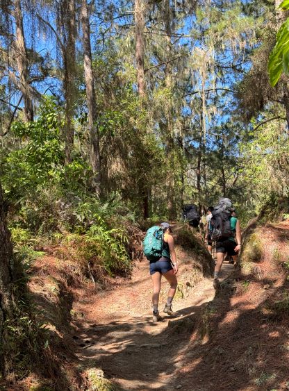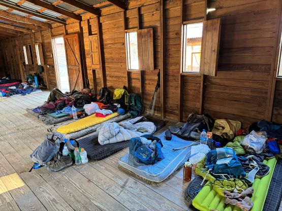 I led us descending more towards NW and rejoined the main trail soon, and this was when Kathy and Daryn showed up. Daryn decided instantly to also check out this bonus peak (and regretted), whereas Kathy and I hiked together for a while, traversing up and over the next bump. At this point we were underneath Loma La Rucilla and the trail would traverse across its entire south slopes while losing 300 m elevation to the campsite. By this point we had done our fair share of elevation gain on Day 1, but we wouldn’t appreciate this stretch a day later. I went ahead, caught up to Hans, Keith, Sung and the group of Harvard kids and we hiked together to the campsite. Our stay would be in a massive ass “hut”, so we laid out our camping gears. I took the corner spot as I showed up there early, and I took Adam Walker’s advice (also from my own experience) to bring my own sleeping bag and mattress even though they promised to provide us their own. The quality of the gears in these 3rd world countries was nowhere comparable to our own and I’m someone who refused to use those crappy and cheap shits. I ended up blowing my own air mattress and used it on top of the one given by the company, and that worked out nicely. That group of college kids showed me a nearby stream where I could take a cold shower. I did appreciate the rinsing but the price I paid was ~25 m elevation loss and regain. The food served by the company was satisfactory but the workers there was making a massive fire with lots of smokes, and was playing some loud music until at least 9 pm when everyone was trying to sleep.