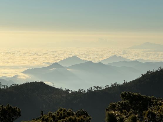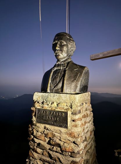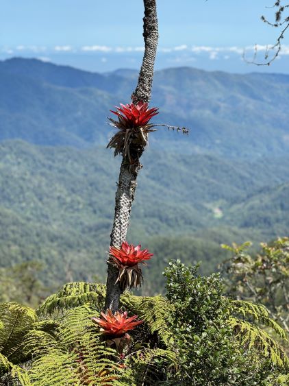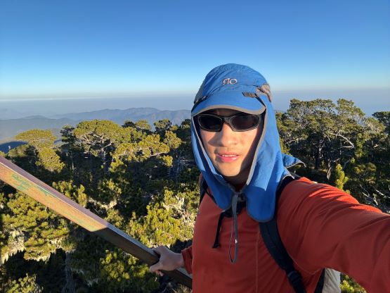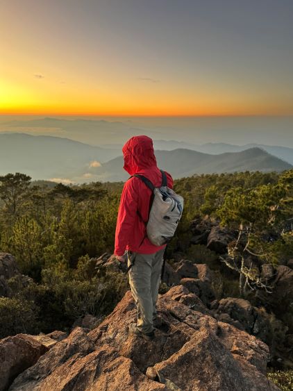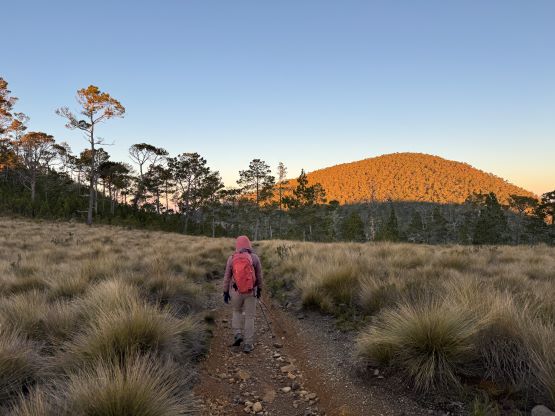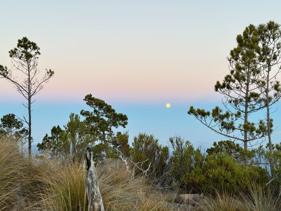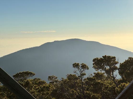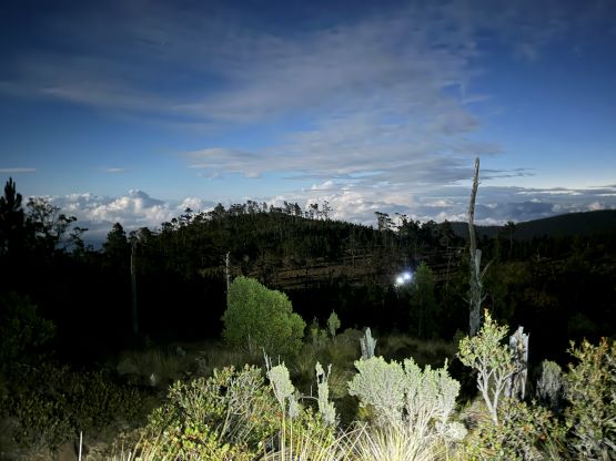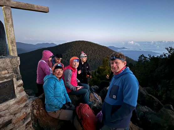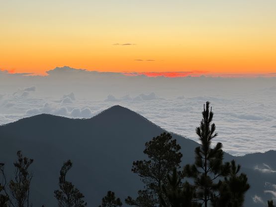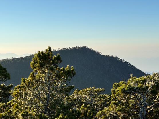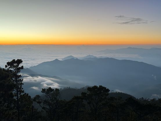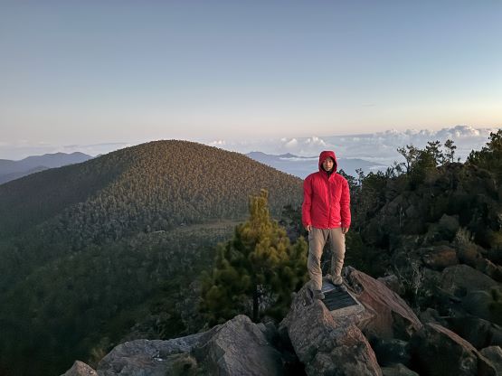 I did get a few hours of sleep because I was exhausted, but I woke up at around 1 am and couldn’t sleep anymore. I listened to some music while waiting for everyone else getting up, which was around 3:30 am. The plan was not clear at all because at least half of us wanted to include Loma La Pelona in, whereas the guide was acting as an authority, stating that we could go, but not without a guide. The new plan was for the “faster group” to wake up early, summit Pico Duarte at dawn and meet the guide back at the Duarte/Pelona trail junction who would be with the “slower group”. I started about 15 minutes later than the “faster group” because I wasn’t too keen on summitting another important peak in the dark without seeing anything. I ended up catching up to that group at about a quarter of the way up, and I was surprised that they were not accompanied by a guide, aka. the authority. My way of doing would be to speed things up, summit Loma La Pelona in the dark (without a guide) and meet the other group on the summit of Pico Duarte because we were essentially “free” at this point so nobody could point a gun on us saying we must follow the order, but the group wanted to stick to the plan. I was not quite happy about it, but then if we slowed further down we could still get some views from the highest peak by shivering on the summit for a bit, so I eventually gave in. There’s even a “rest stop” at the trail junction that allowed us to take a break and that further slowed things down, that by the time we were not far from the summit of Pico Duarte we could already see the predawn horizon. A few of us there lingered on the summit for about half an hour, not quite till sunrise but long enough to get some excellent views.