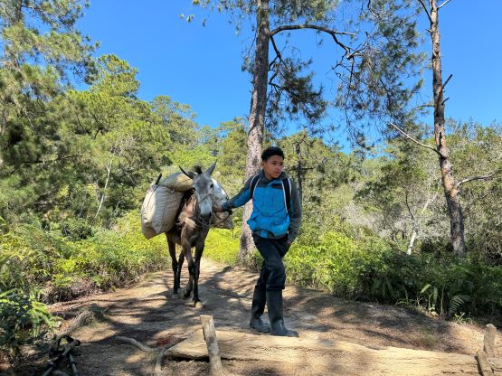 The guiding company came at 6:30 am to pick us up with a huge ass truck. All ten of us together with all of our luggage were piled onto the truck bed and we spent the next hour driving to the park’s entrance. We were then combined with another group-of-five which we later learned was from Harvard’s med school. These college kids, though without a lot of mountaineering experience, were able to move more or less at the same pace with us. We all had to be lectured by a park official who did not speak any English but our lead guide was there to translate. We were told to not leave trash, not to start up a fire and never play music loudly on the trail, but I don’t think that guy had gone up this trail in the recent days, as we had plenty of trash, fire and loud music at camp and on parts of the trail. They also gave each of us a wrist tag and we must wear that throughout the trip, as if we were prisoners in some Russian concentration camps. Some people might think that’s cool, but I’m not a fan of these pre-hike authorization processes. Nevertheless I accepted whatever I was given, left one of the luggage at the trail-head, gave the other piece of luggage (a duffle bag) to the donkeys to carry and started the hike with everyone else. The stoke level was high but I knew this would eventually turn into a death march. As a result I on-purposely started as the last person in the gang.