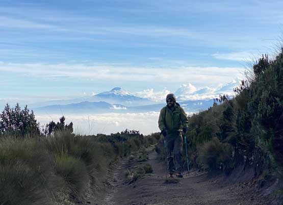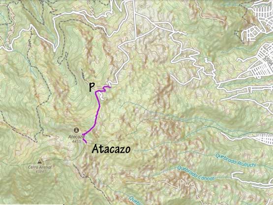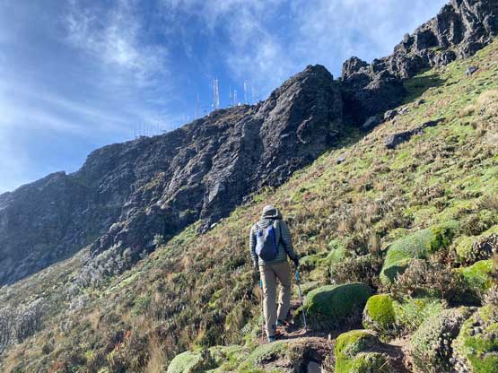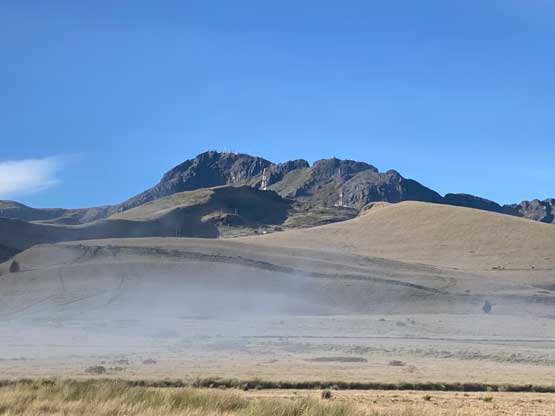 At around 3500 m elevation the road made a sharp right turn and started to circumnavigate around the mountain in a horizontal fashion. The conditions actually improved from this point onward except for another short stretch of steep and rough section. We eventually turned onto the final spur due south and I anticipated a “driveable end” at any time, but Jorge managed to drive us all the way to the road’s end near an observatory or communication structure. We opted to park a tiny bit under the road’s end in front of the “trail-head” and that’s at 4100 m elevation. Since there’d be virtually no way to find an Uber to get us back into the city from this remote and weird spot, we opted to let Jorge wait at the trail-head. The clock would be ticking meaning that the faster we hiked, the cheaper the ride would be.