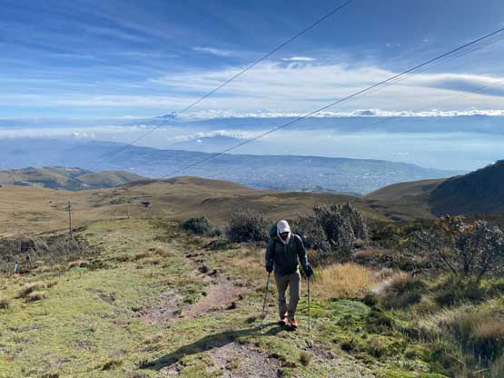 Co. Atacazo is an old volcano in the broader vicinity of Quito. The elevation makes it a great acclimatization hike, but this peak isn’t often done as the neighbourhood is rumoured to be “bad” and in addition to that, the summit is riddled with communication structures making it more of a peakbagger’s summit than a mountaineer’s. The access is also rough and a reliable 4WD vehicle would be required for all but the most determined drivers. Adam and I did not have a lot of “beta” about this peak so we naively opted to hire a taxi driver. Adam had been hiring Jorge during his first two days of arrival so we naturally hired him again for the hike on Atacazo (through WhatsApp), but as mentioned above, Jorge’s vehicle is 2WD and the tires were as bald as one could imagine.