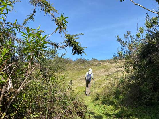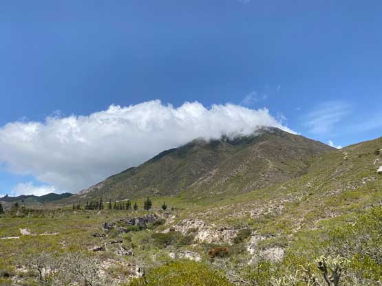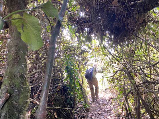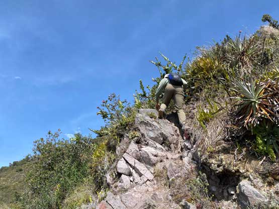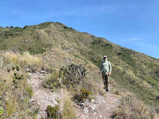 We made sure to hike away from that lady and the dogs and had no further issues, but the COVID, the dog bite and the high altitude definitely put a damper on our mood. We eventually did speed things up a little bit after gaining the saddle between the two peaks and we opted to ascend the higher one first as that’s more important. The trail became ridiculously steep at places and ascended through some jungle tunnels that I had never seen before. It seemed to me that Cerro La Marca in in a dry desert but Cerro Sincholagua is on the tropical jungle and how amazing was that. We lingered on the summit of Sincholagua for over half an hour mostly to spend more time at this altitude.