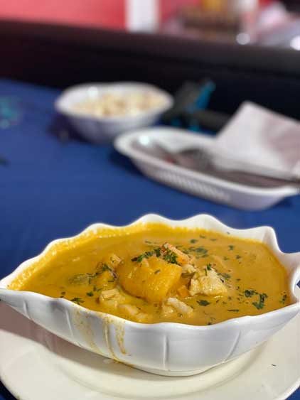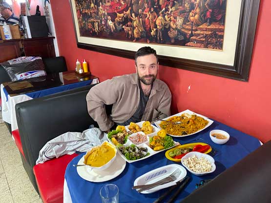 After slowly making our way down to the saddle we resumed the 200 m elevation gain on Loma La Marca. It’s always a nice thing to travel with fellow peak-baggers as otherwise I likely would have to ascend this add-on peak on my own. The hike was boring and the view was mediocre, but it’s a ranked peak that I could not have skipped. On the descent we paid extra attention to avoid dogs. The lady was nowhere to be seen, but there were 3 aggressive dogs on the dirt road out into the village. We did not want to risk walking that road so we tried really hard to arrange a pick-up right from this trail-head or the garbage dumpster. Thankfully after 15 minutes we succeeded through Uber app and another hour later we were back in Quito. Adam showed me around with the local restaurants and the first one we tried was a sea food restaurant only 2 minutes from our Air B&B, and it’s a good one.