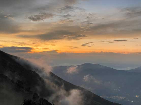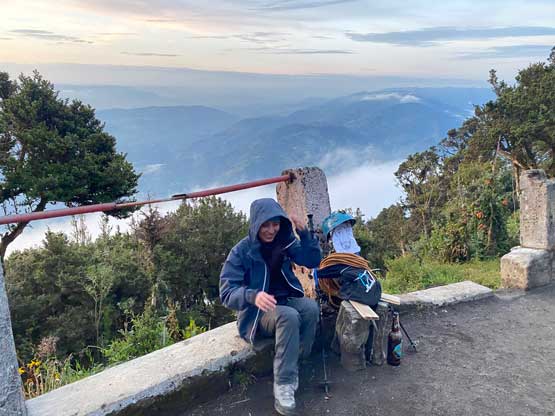The active volcano of Tungurahua rises over 3000 vertical meters above the small town of Baños and getting to this town requires descending almost 1000 m from Ambato down into the edge of Amazon jungle. The lower zones of this volcano are basically in the jungles while the upper route is free of permanent snow/ice due to the active nature. In some years this volcano is closed to climbing due to eruptions but when Adam and I decided to climb some peaks in Ecuador in December 2022 to January 2023 the peak was open, so we reserved our spots. The climb legally requires a guide for all foreigners even though the ascent is entirely non-technical. We weren’t very familiar with the politics in this country so opted to obey the rule. The ascent requires over 2300 m elevation gain and is usually done in two days with one night spent in the Refugio (hut) at 3800 m elevation, and the cost through Andean Summit Adventure was about 300 USD per person. As always the guides in Ecuador aren’t flexible with the weather so we paid our bills months ahead and took the gamble. The summit day was set to be the New Year’s Day. Given the fickle weather thank to the proximity to the jungles we knew the success would largely rely on our luck, but there’s nothing else we could do.